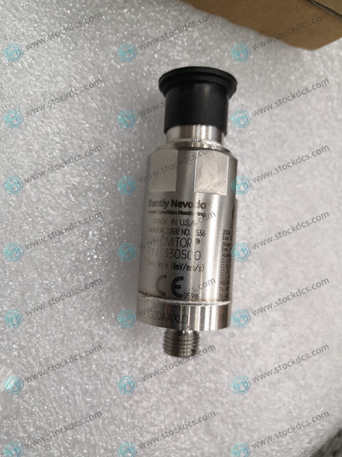 The BENTLY 330500-00-00 vibration sensor is particularly suitable for monitoring the condition of machines with rolling bearings, measuring vibration in units of speed.