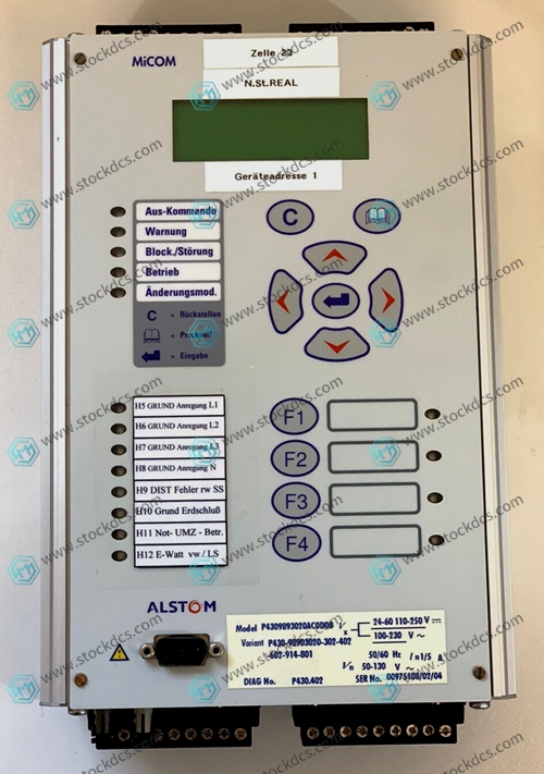 ALSTOM P4309893020C0D0B is a motor protection relay commonly used to protect motors from overload, short circuit, phase sequence error, and other electrical faults. The following are the general characteristics and possible application areas of the protective relay: